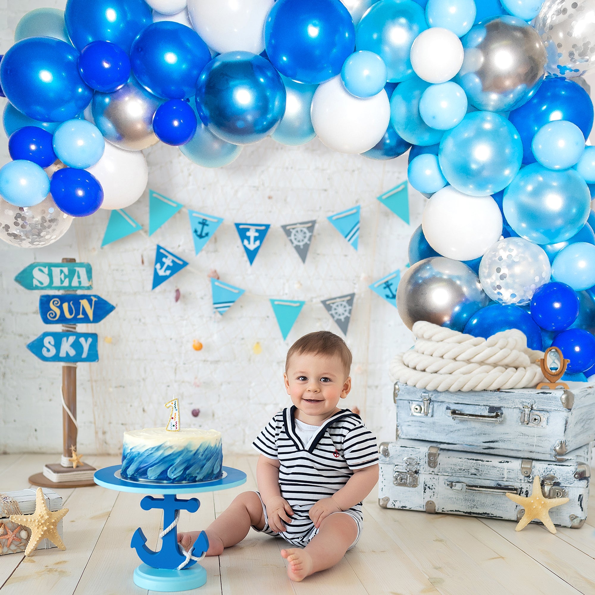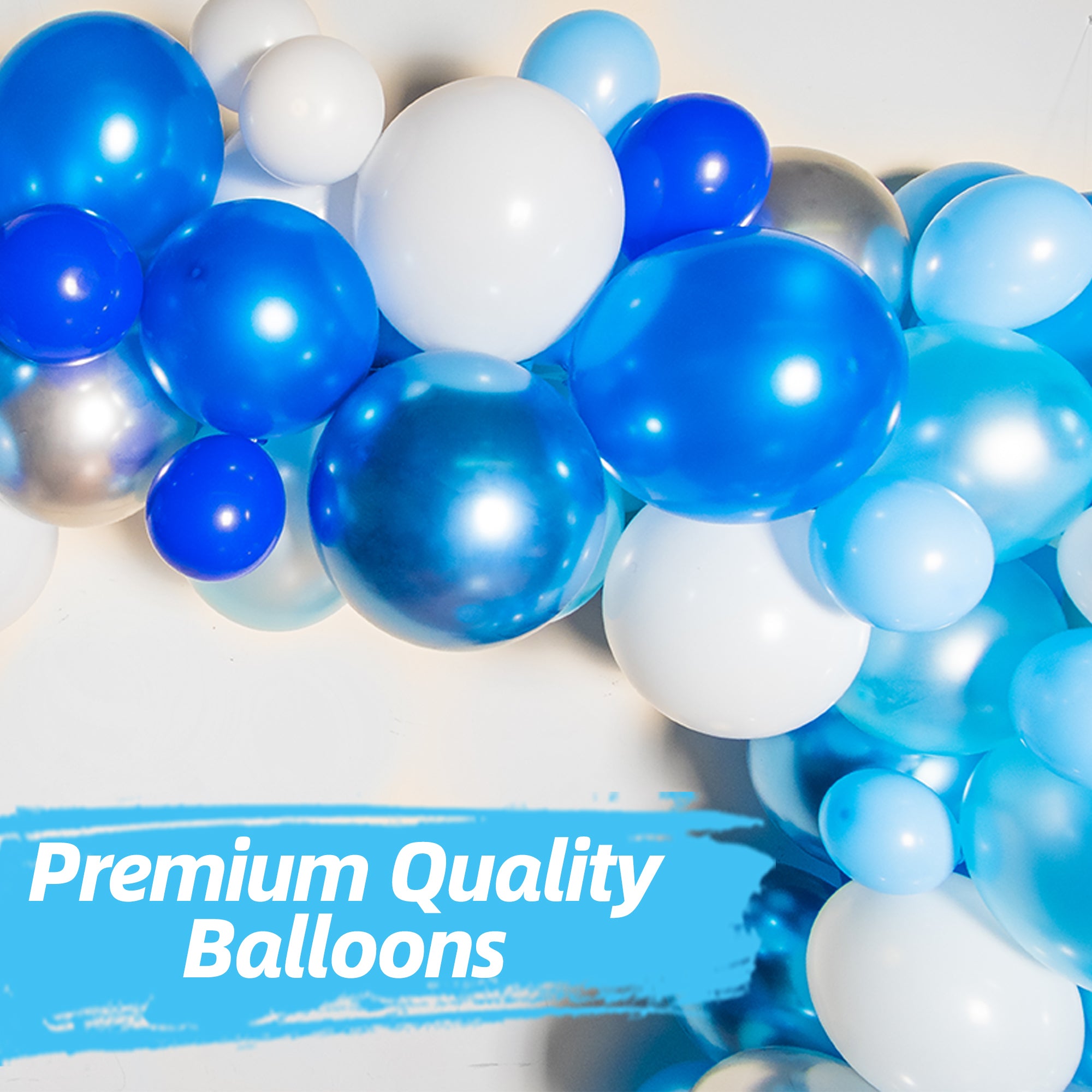 Blue Balloon Garland Kit | 120 Pack | Blue, Royal and Light Blue, Chrome Silver, Silver Confetti Balloons