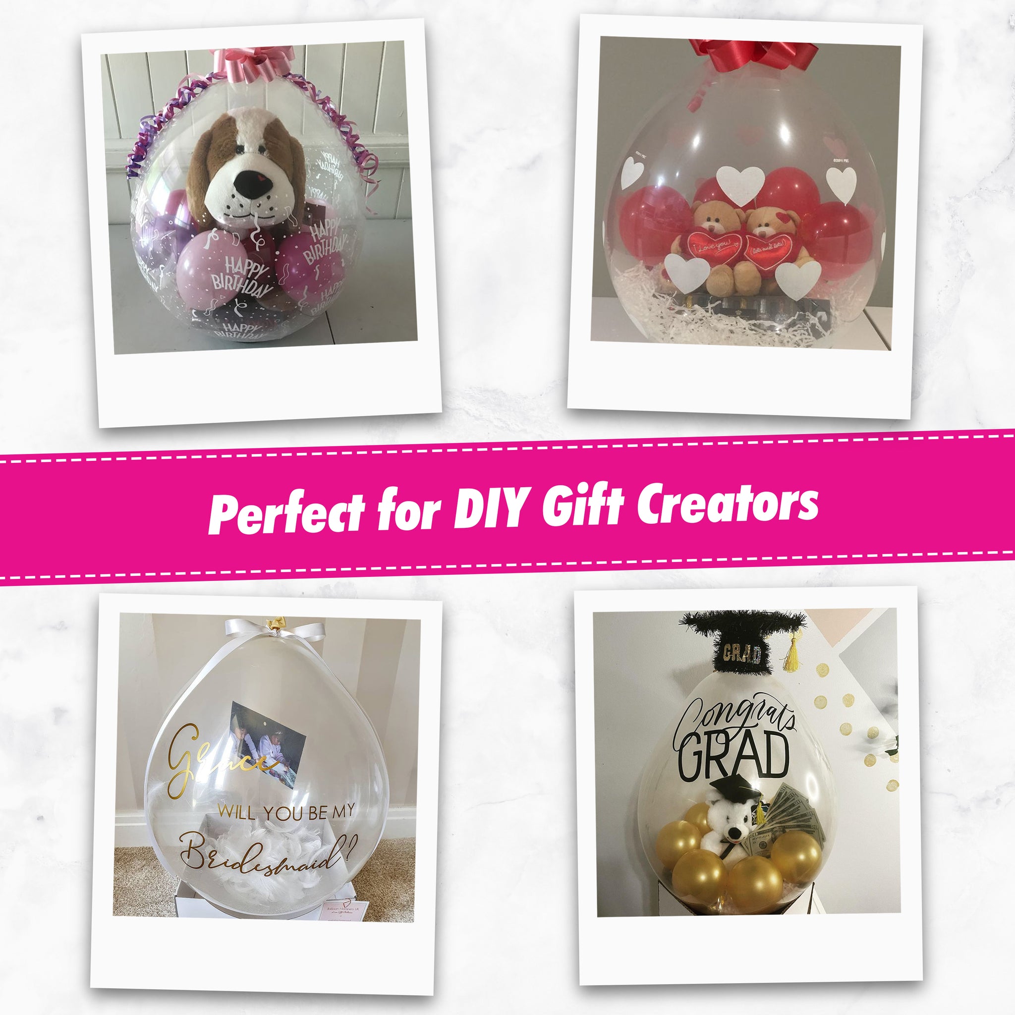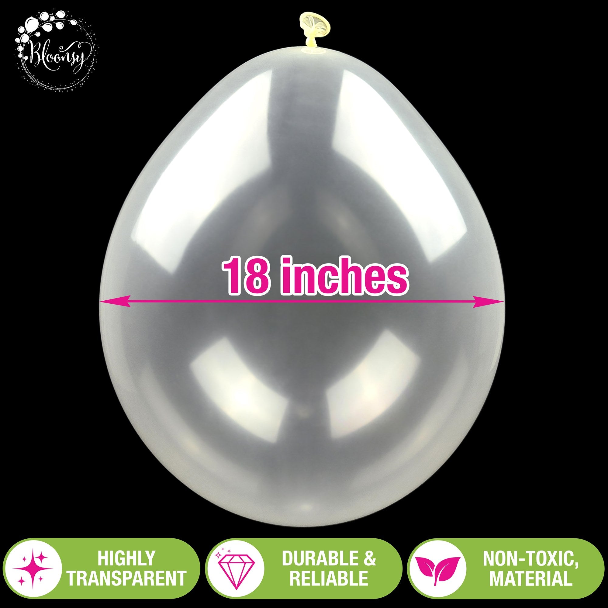 Elevate your event décor and balloon stuffing projects with our Pro-Grade 18-Inch Clear Latex Balloons, designed for use with Bloonsy stuffing machines and compatible with most other models. These highly transparent balloons offer exceptional quality and durability, making them the professional's choice for creating stunning displays.